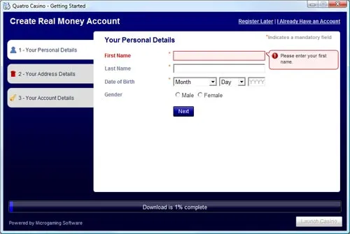 Le programme du Quatro Casino commencera l’installation. Pendant l’installation vous pourrez enregistrer un compte ou alors utiliser un compte existant si vous en avez déjà un.
